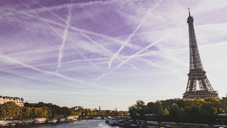 View of the Eiffel tower against the sunset.