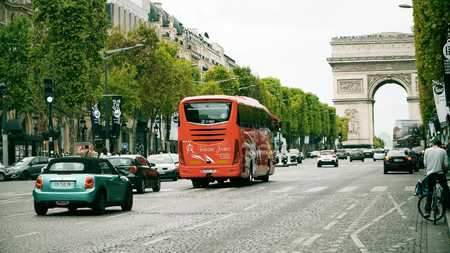 Street level view of Arc de Triomphe from Avenue des Champs-Elysees