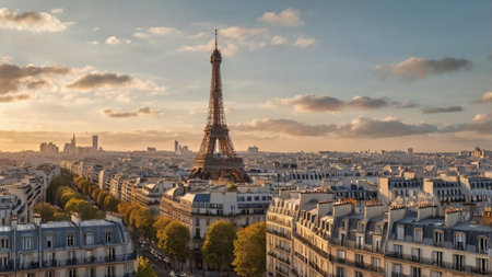 Aerial view of Paris with Eiffel Tower in autumn, France