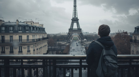 Contemplative Man Overlooking Parisian Skyline with Eiffel Tower in View