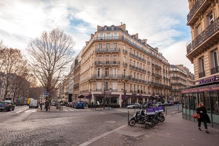 Paris, France - January 20, 2019: Streets and classical architecture of Paris. Travel