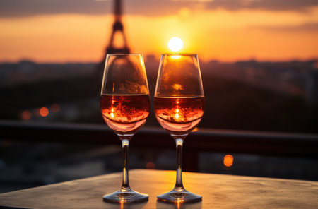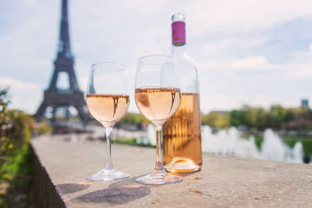 Wine in a glass near the eiffel tower. selective focus. Nature.