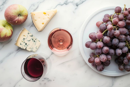 Wine, grapes and cheese, space for text.