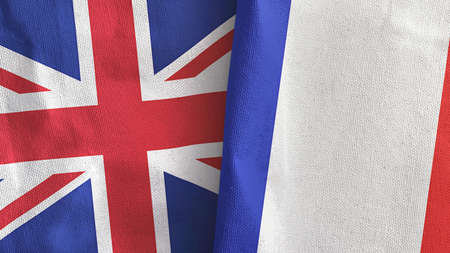France and United Kingdom two flags textile cloth 3D rendering