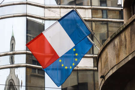 French and EU European Union flags on the city hall