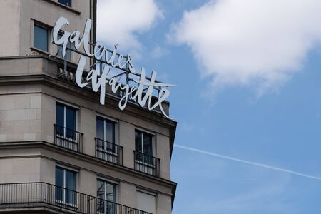 PARIS, FRANCE - MAY 3 : View of galeries lafayette shopping mall sign in Paris, France on May 3, 2018