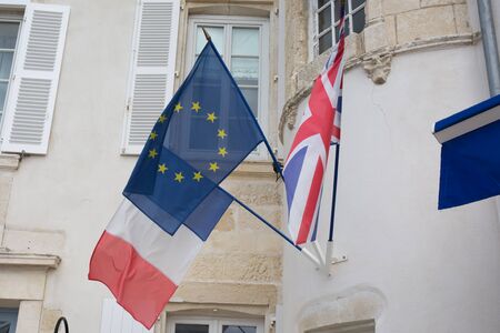 Flags of France and European Union on a building