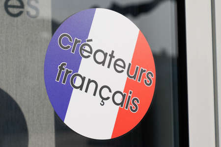 creators francais text sign means french designers on windows stickers facade