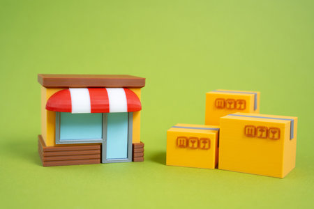 Shop and boxes with goods. Delivery of goods. Dispatch of orders. E-commerce fulfillment, logistics operations. Retail supply chains. Fast shipping, inventory management. Modern trade infrastructure.