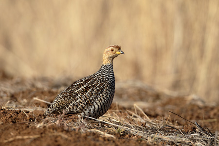 A Natal Spurfowl, Pternistis natalensis, looking for food