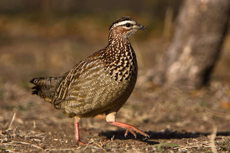 Red-billed francolin (pternistis adspersus) on the ground, Botswana