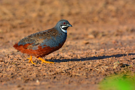 Beautiful Bird, King quail, Blue-breasted quail, Asian blue quail (Coturnix chinensis) standing on the ground taken in Thailand
