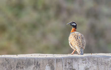 Yellow-necked Spurfowl (Francolinus leucoscepus). A small colourful bird found all over the plains and forests of sub-Saharan Africa