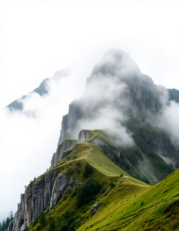 Mountain landscape with fog in the italian alps, Italy