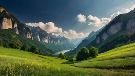 mountains and green meadows of switzerland reserve and ecology nature