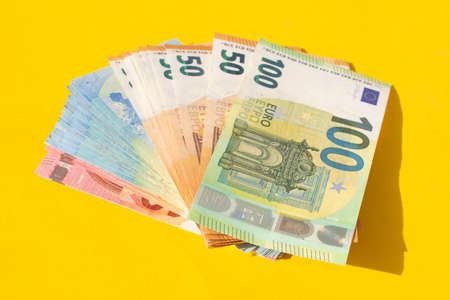 Euro (EUR) banknotes, currency of European Union (EU) with copy space