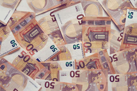 background of banknotes 50 euros beautifully laid out. euro money. European Union banking, financial savings. concept of economy. banks, money, wealth, finance and business success