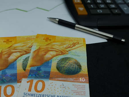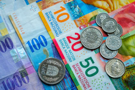 Vaduz, Liechtenstein, November 22, 2021 Different money bills in the swiss currency