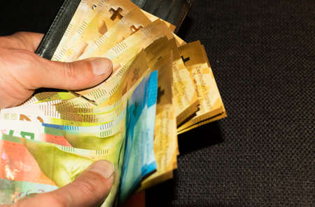 Bank notes in swiss francs saved and shown in a wallet 27.5.2021