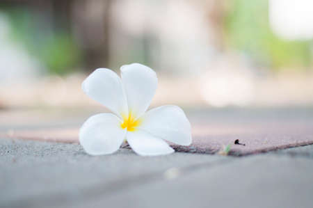 Plumeria flowers white on the floor, Nature background.