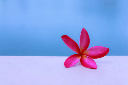 image of white Frangipani flower on the swimming pool border.