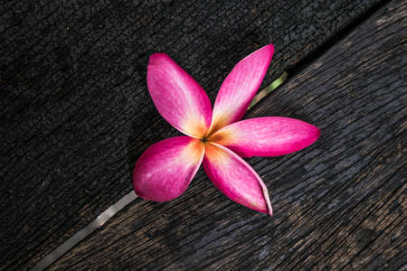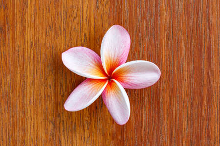 Plumeria frangipani flower on wood background