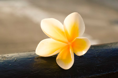 frangipani flowers on the table, soft focus background.