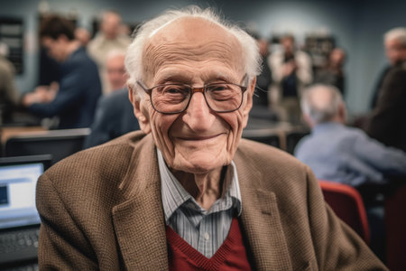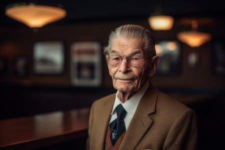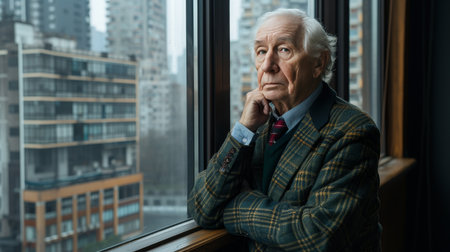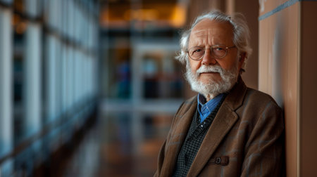 Sophisticated elderly gentleman in a grand library, symbolizing wealth and elegance.