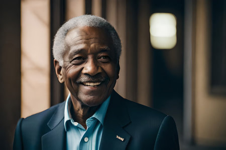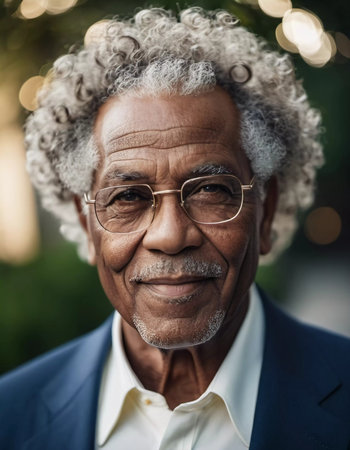 A portrait of a beautiful African senior 70- 80s man. AI generated