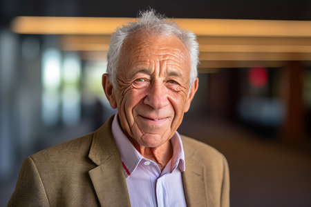 Portrait of a senior man smiling at the camera with blurred background