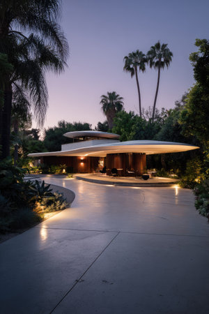 Home architecture design in Art Deco Style with Ornate windows constructed by Stucco, limestone, metal accents material. Rectangular forms and sleek lines. Generative AI AIG25 .