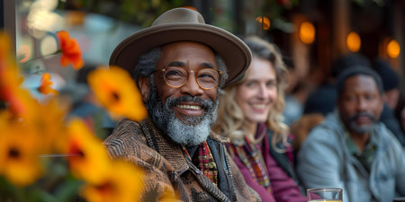 Veterans from diverse backgrounds bonding over memories and camaraderie on a sunny day at a street cafe. Concept Veterans, Diversity, Bonding, Memories, Camaraderie