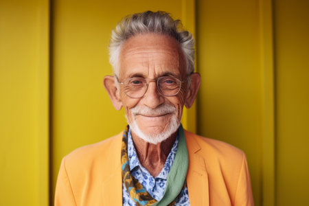 Beautiful style old man with beard wears colorful clothes. Generative AI illustration