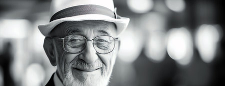 shot of a senior man wearing a vintage hat and glasses, created with generative ai