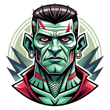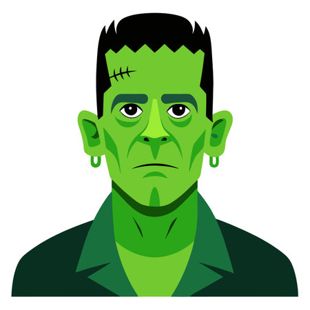 Artwork featuring the classic monster Frankenstein. His ugly face. AI generated. Vector icon