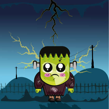 Monster kawaii on a thunder night. Halloween cartoon - Vector
