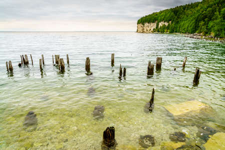 Remnants of docks in Fayette Historic Townsite in Michigan