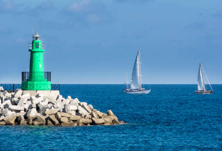 Wooden railing over the sea (Pesaro, Italy, Europe)