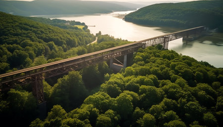 Generative AI : Aerial view of Coombe Viaduct Tamar Bridge and the Royal Albert Bridge at low tide Saltash Cornwall United Kingdom