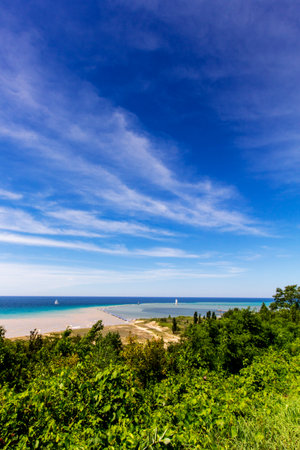 Scenic overlook of Sleeping Bear Dunes National Lakeshore in Northern Michigan