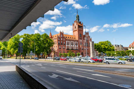 Slupsk, pomorskie / Poland - June, 3, 2020: Old city hall building. The seat of the city authorities in the city center. Spring season.