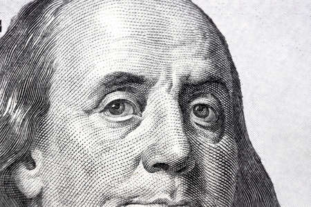 Portrait of Benjamin Franklin macro from one hundred dollars bill