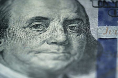 Macro shot of the face of Benjamin Franklin on a dollar bill