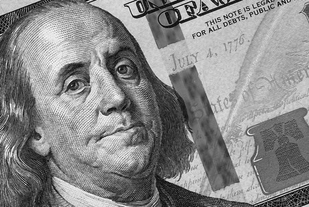 close up Benjamin Franklin, One Hundred Dollar Bill