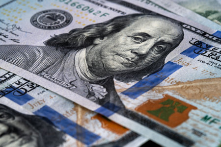 new banknote one hundred us dollars in cash, close-up of genuine us banknotes
