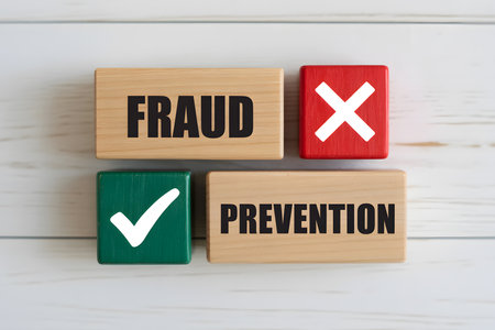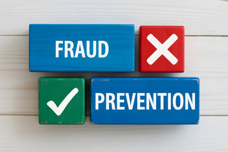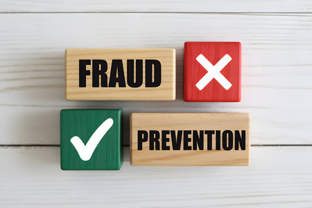 Fraud Prevention Visual Concept on Wooden Blocks for Business or Media. Minimalist Wooden Blocks Composition.