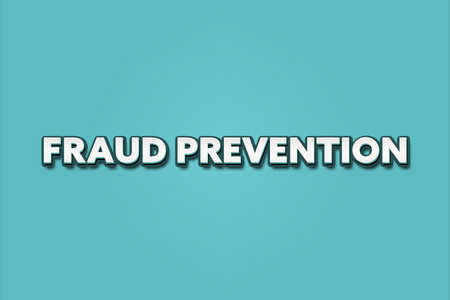 Fraud Prevention. A Illustration with white text isolated on light green background.