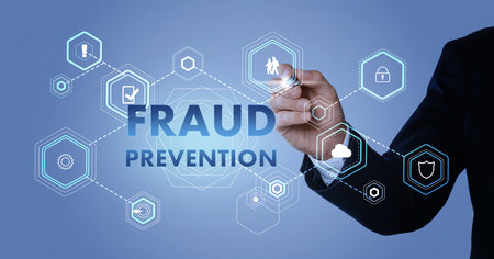 Hand-drawn lettering of 'Fraud Prevention' on a textured abstract background. This image conveys concepts of security, caution, and protection against fraud.