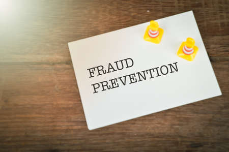 Blurred image of white paper and safety cones written with FRAUD PREVENTION