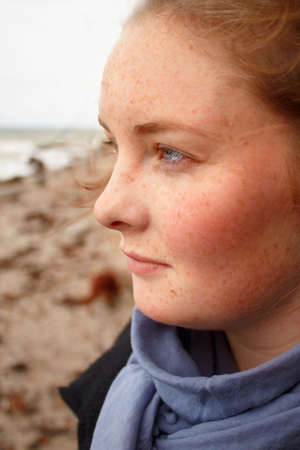 Beautiful red haired irish girl with blu eyes, red hair and lots of freckles